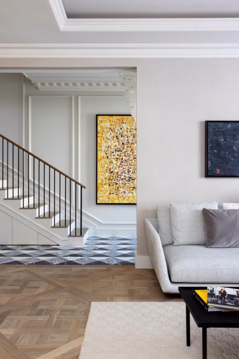 Chelsea SW10 project beautifully combines prime Versailles Panels with custom stairs cladding in a cohesive, vintage slate grey finish. This installation showcases our precision in blending classic and contemporary styles.