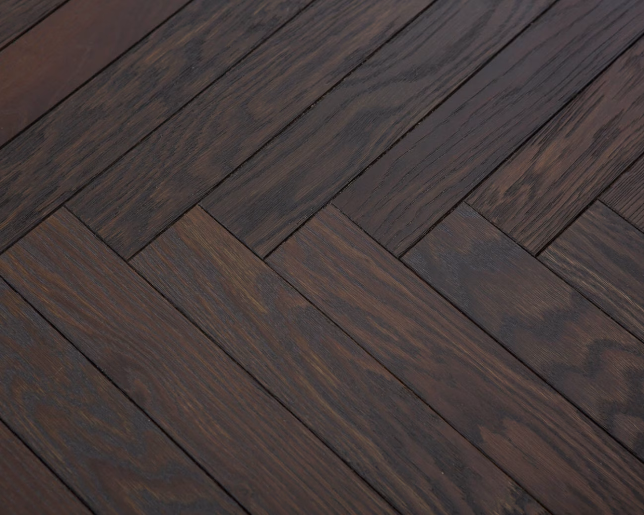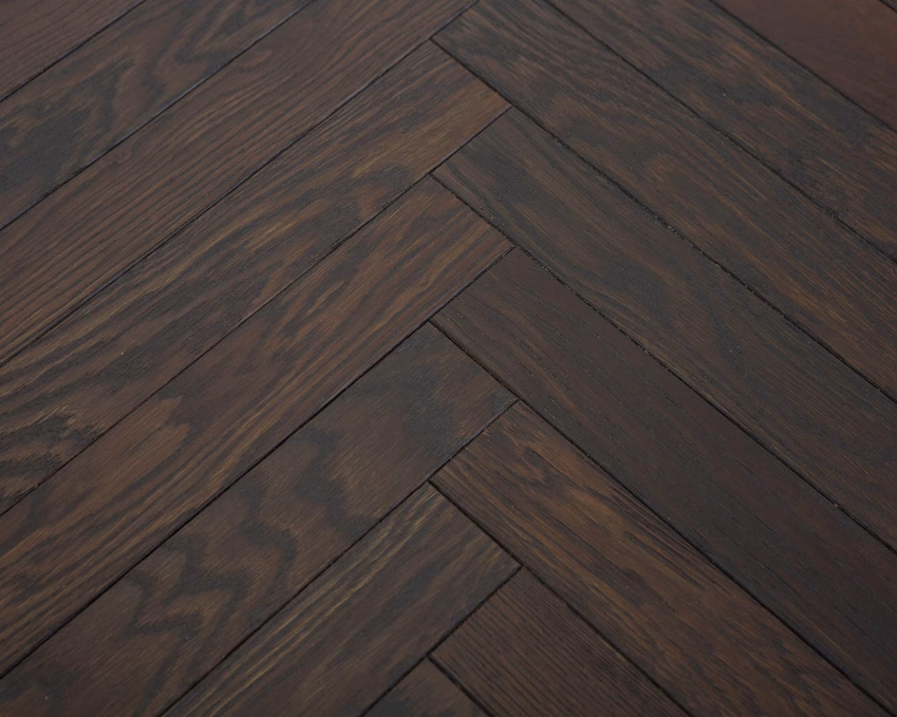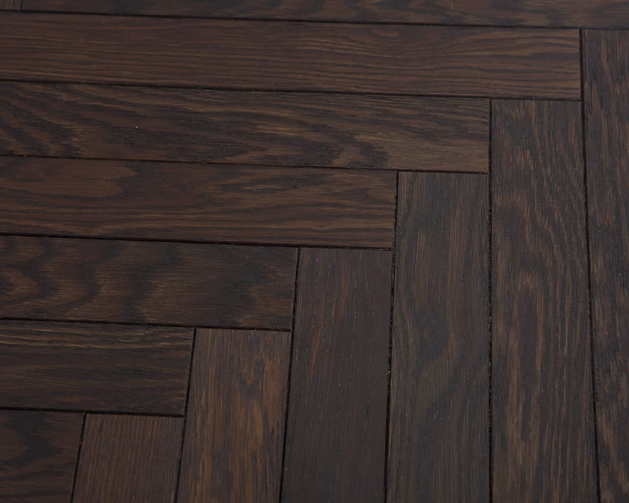 Engineered Oak herringbone 90º style, made from European Oak (Quercus petraea ) and available in the following width(s): 70/90/100/120 mm, following length(s): 350/400/500/600 mm with overall thickness 15 mm ( 4 mm top oak layer ) / 20 mm ( 6 mm top oak layer ) options and following grade(s): Prime Nature and Character. The base layer is made from WBP European Birch ( Betula Pendula ) cross layer plywood. Suitable for underfloor heating