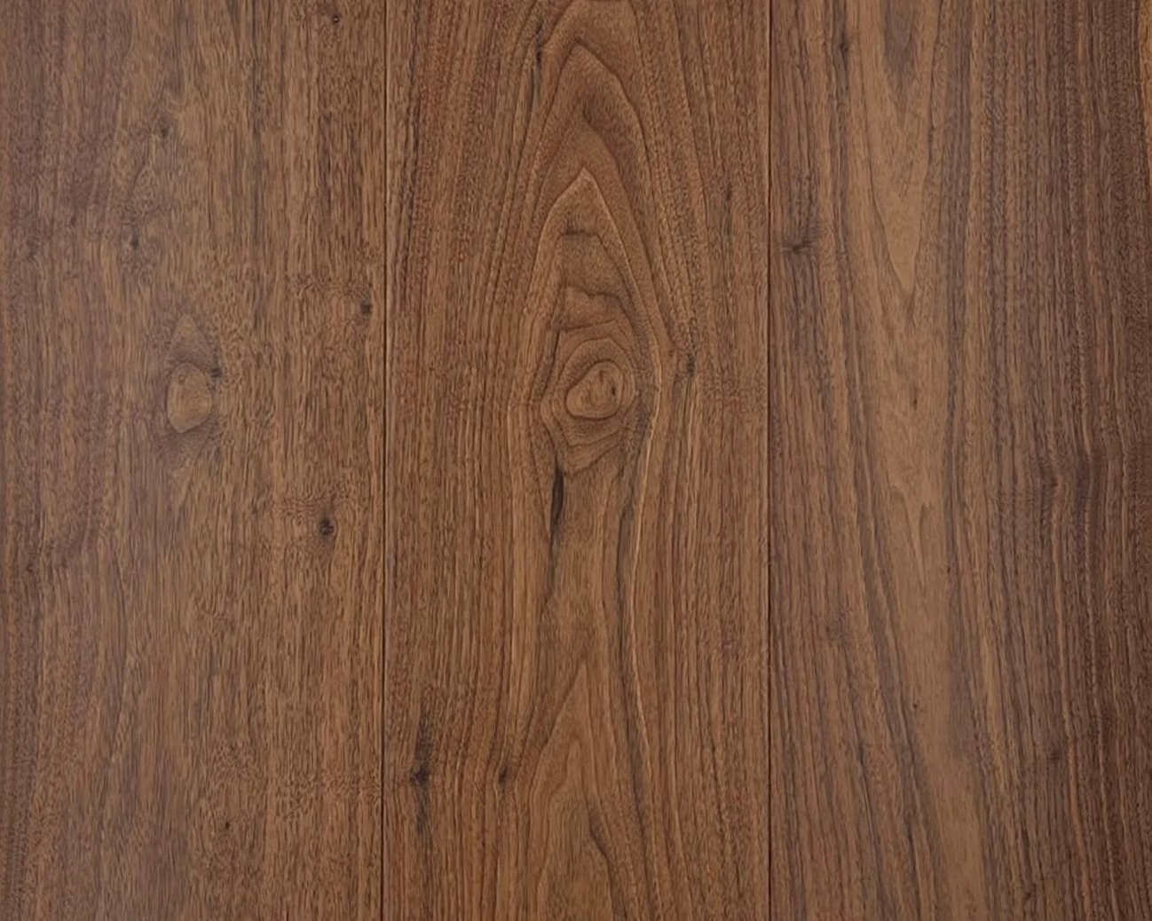 Engineered American walnut herringbone parquet 90º is available in the following width: 125 mm, length: 600 mm, with an overall thickness of 14 mm (3 mm top walnut layer). Rustic Grade. Suitable for underfloor heating