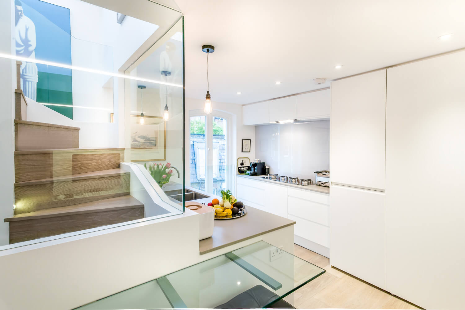- Special Features: Bespoke staircase cladding, seamless integration with eclectic décor, enhanced light flow through glass elements