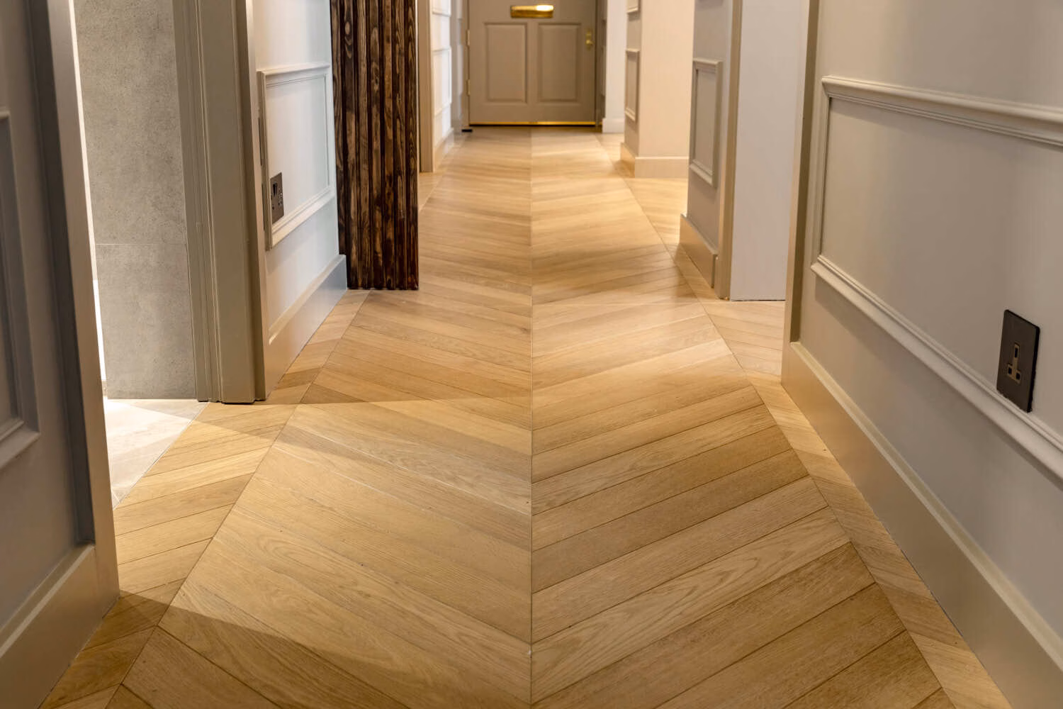 Located in the Kensington Olympia, this flooring project focused on installing a Smoky George Chevron pattern, overcoming challenges such as unexpected water damage. This case study showcases the artistry of choosing and fitting the chevron parquet flooring and our response to obstacles.