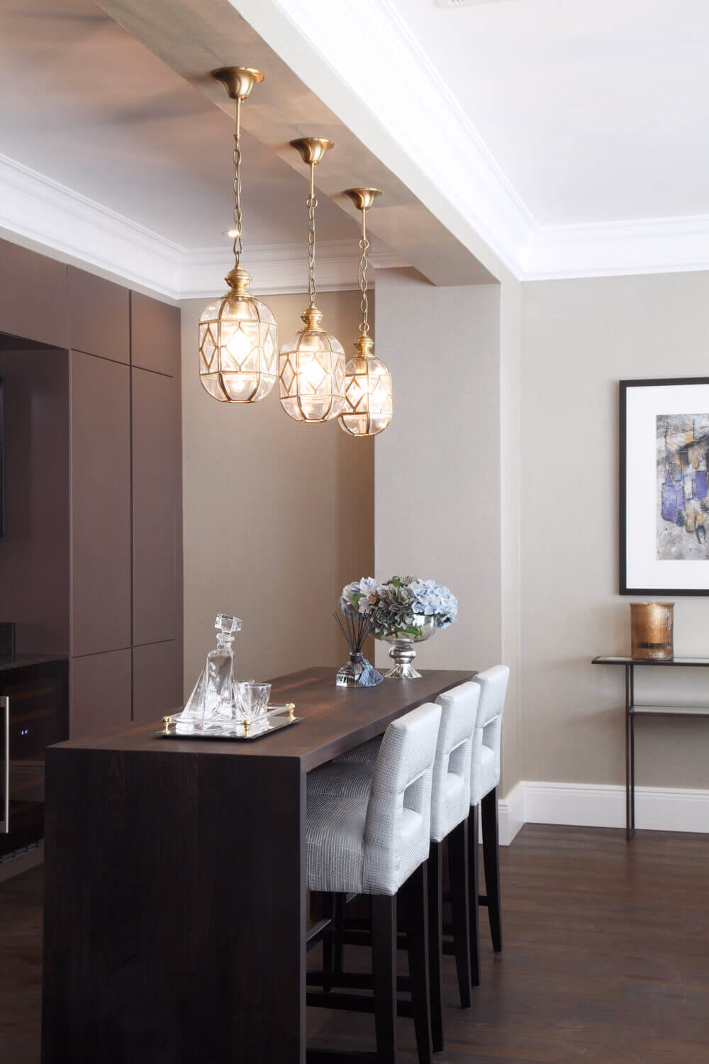 3 Oak has supplied and fitted engineered oak planks for this project located in Oxshott, Surrey. We were working closely with the interior designers on this modern classic design project within a prestigious country development. An elegant finish is achieved with these deep ebony coloured oak planks with longboard with mixed widths up to 2.8m.
